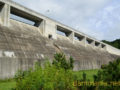 ダム湖より堤体を眺める。